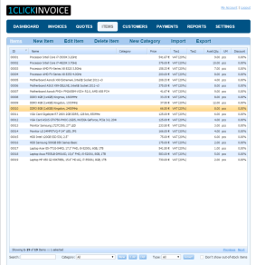 Save items in your 1Click Invoice account once and use them forever. You can set prices, taxes, discounts, available quantities etc. You can apply two taxes for each item. Every time an invoice is created or modified, a product stock is updated automatically.