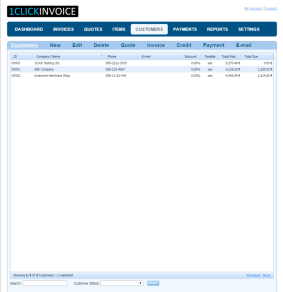You can add, edit and delete your customers. Once a customer is saved in your account, you can create new invoices, quotes and credit notes for that customer in seconds. You can easily check how much each customer owes you, by looking in the column "Total Due".