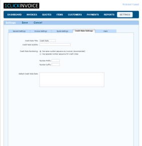 Set up the credit note numbering system, default terms, note etc. You can use same number sequence as invoices or separate number sequence for credit notes.