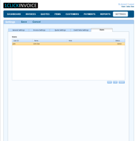 You can add users that will use your 1Click Invoice account. The user's status can be admin or staff. Users with "staff" status cannot access the "Settings".